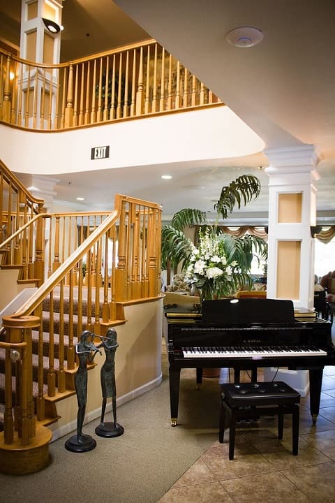 Morningside of Fullerton is a large, well-established retirement community that offers both independent and assisted living on a sprawling 33-acre campus. Residents have access to a wide range of amenities—think heated pools, pickleball courts, walking paths, and even a lake with waterfalls. The campus was recently renovated, so the shared spaces feel modern and inviting, including a performance stage and inlaid dance floor for events and gatherings.